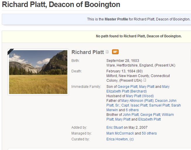 Enoch was the child of Deborah and Abijah Comstock, Abijah was the son of Abigail and Moses Comstock, Moses the child of Christopher Comstock and Hannah Platt.... and Hannah was the daughter of Deacon Richard Platt and Mary Wood.